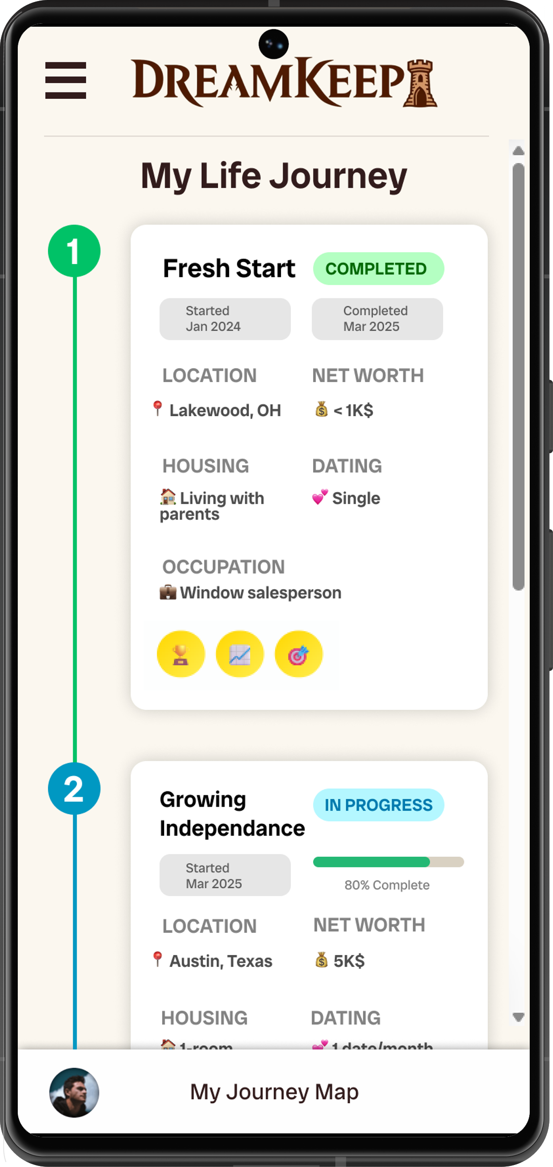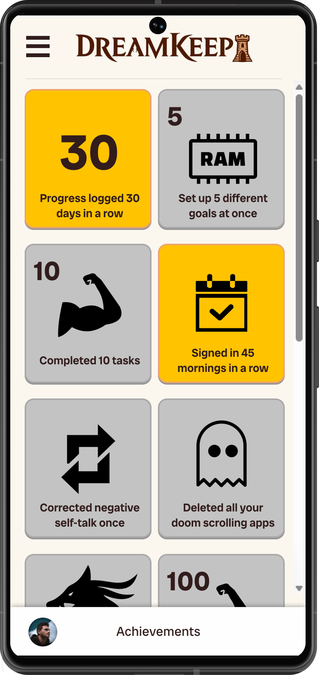 • Visualize your future self. Know where you’re headed.Achievements System